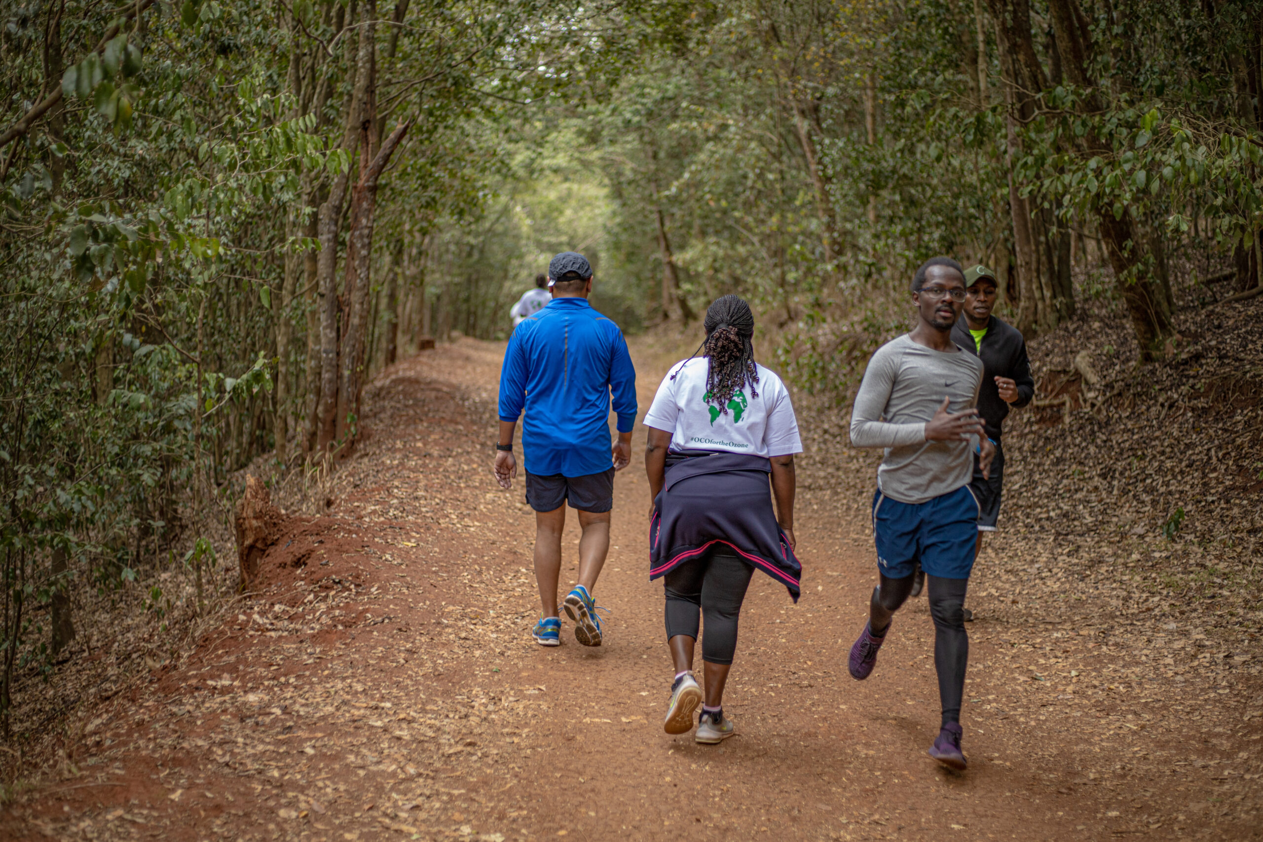 To mark the World Ozone Day, we started the #OCOfortheOzone run as the sun got up, with the 21km runners who were very keen to get going and stand a chance at winning the prize money. They followed a route that went through the larger part of the forest that the Karura Forest marshals/rangers, as well as some of our volunteers, helped mark the trails and guided the runners along the way. The 10km and 5km runners and walkers left a little later, a few with dogs in tow and some even more ambitious parents with children in tow (who went ahead to claim prizes for coming in first, second, and third in their respective races).